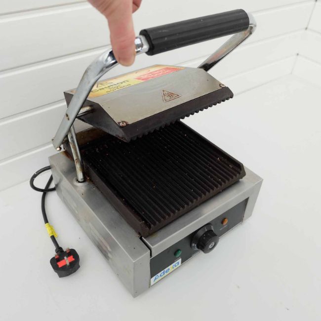 Adexa Panini Sandwich Grill. Single Ribbed. Plate Size 220 x 220mm. Thermostat 0 to +300C.