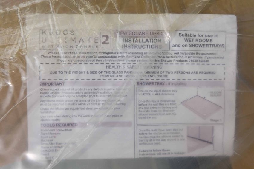 Kudos Ultimate 2 Wet Room Glass Panel.