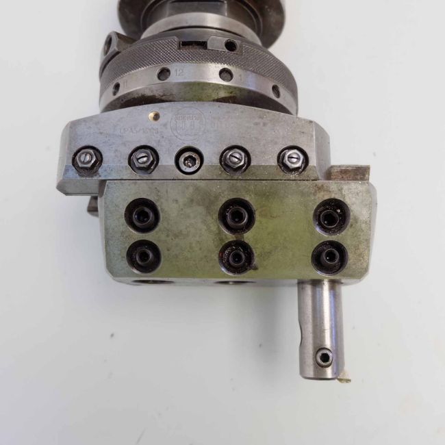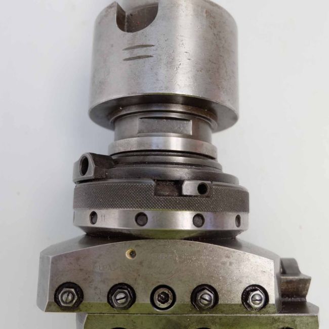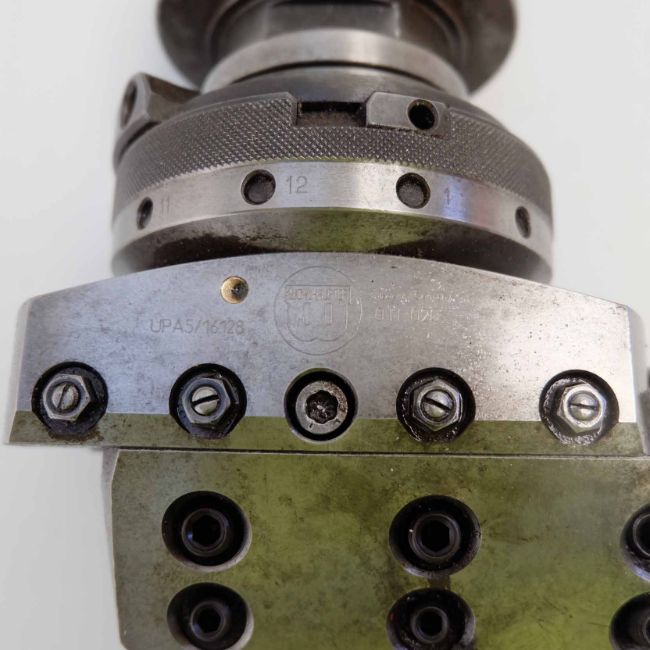 Wohlhaupter UPA5/16128 Boring & Facing Head. Range up to 19 5/8". Max Slide Adjustment 3". Max Diameter of Slide 5.58". Spindle Taper 50 ISO x 1" BSW.