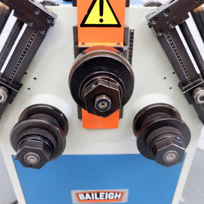 Baileigh Model R-M55 Section/Ring Bending Rolls.Tube Capacity 70mm Diameter x 2.1mm Thickness. Solid Capacity 35mm Diameter. Flat Bar Capacity 80 x 15mm. Shaft Size 50mm Diameter. Two Driven Rolls. Single Phase. Motor 1.5HP.