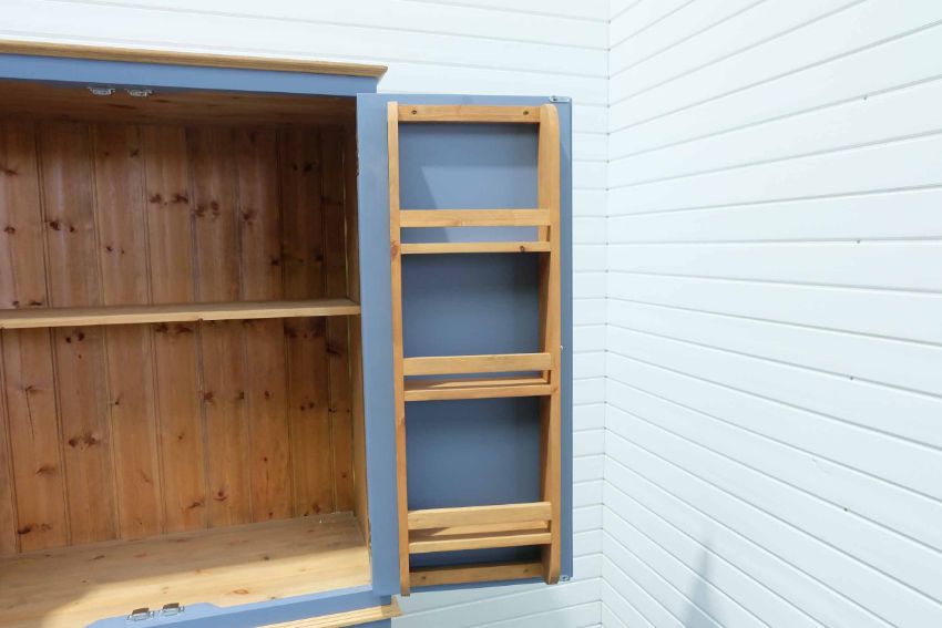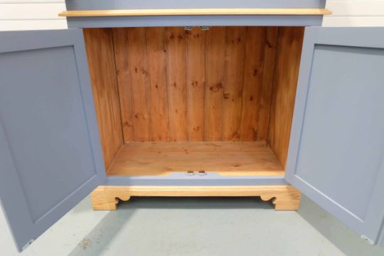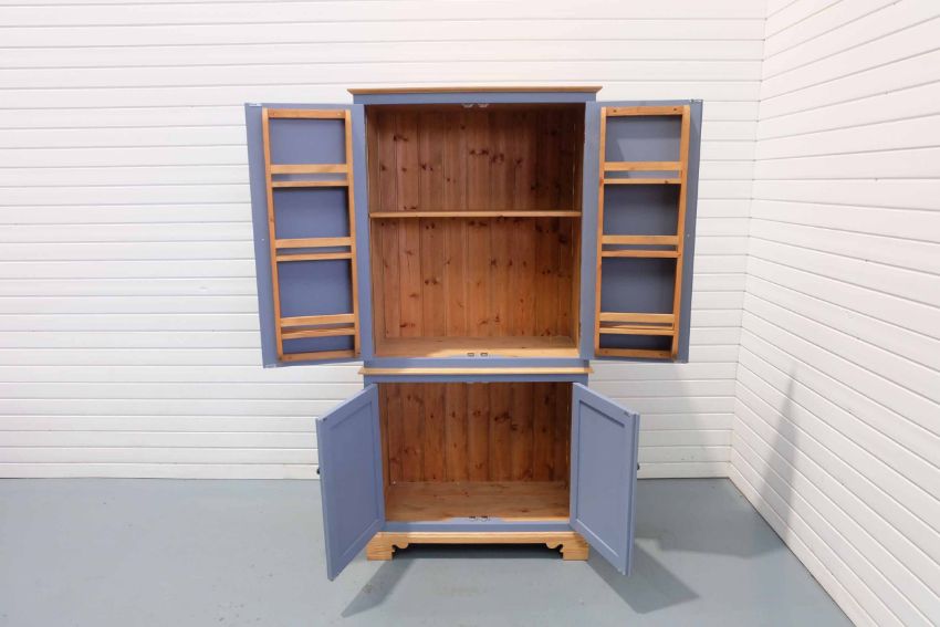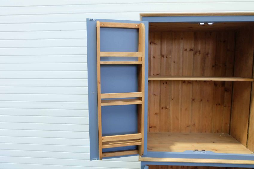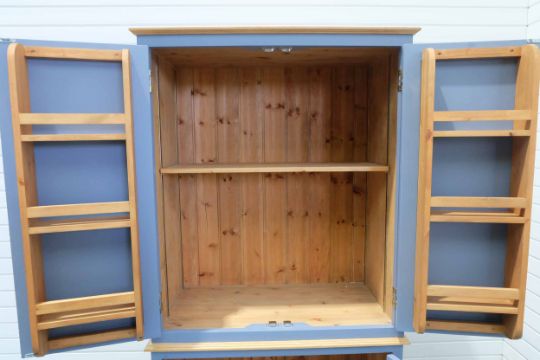 2 Door Cabinet With Adjustable Shelf & Spice Racks Fitted to Inside of Doors on 2 Door Cabinet. Painted Blue.