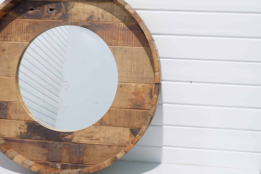 Round Driftwood Framed Mirror.