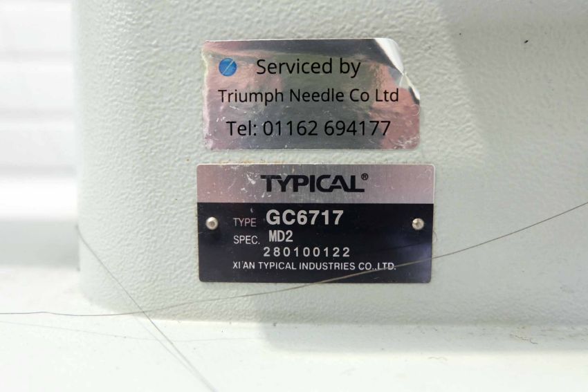 Typical Type GC6717 MD2 Lockstitch Machine. Stitch Type 301. Max. Sewing Speed 4,500spm. Max. Stitch Length 4mm. Integrated Light & Back Tack. Clearance Under the Arm 260 x 130mm. Single Phase.