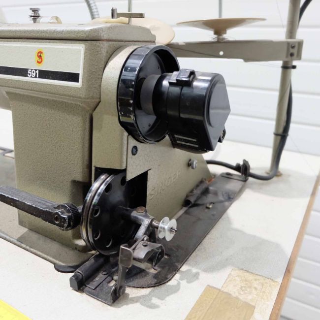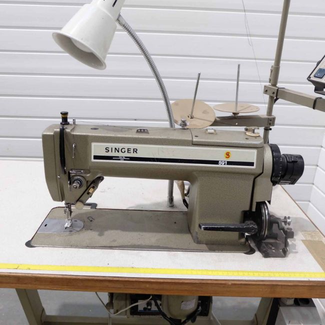 Singer Model 591 Lock Stitch Straight Stitch Industrial Sewing Machine. Sewing Speed 2000spm. Adjustable Stitch 0 - 4.2mm. Cat No 1955. 3 Phase Motor.