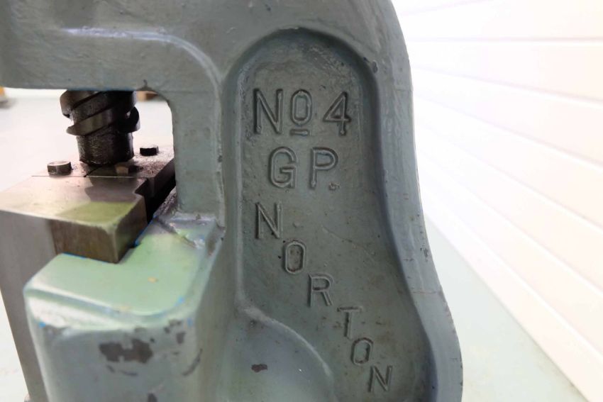 Norton No.4 GP Heavy Seam Closing Fly Press. Throat 5". Daylight 7". Table Size 19" x 10".