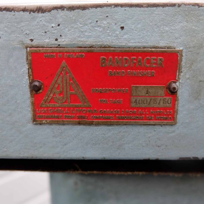 RJH Horizontal Pedestal Bandfacer. Belt Width 4" (100mm). 3 Phase Motor. 1 Horse Power.