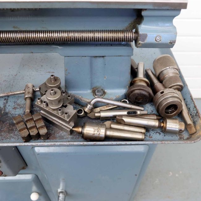 Boxford Model AUD Centre Lathe. 16" Between Centres. 9" Swing Over Bed. Speeds 40-1400rpm. Norton Gearbox. Fully Auto Apron. 3 & 4 Jaw Chucks. Face Plate. Catch Plate. Collet Set. 3 Point Steady. 2 Point Travelling Steady. Single Phase Motor 240V.
