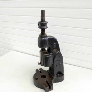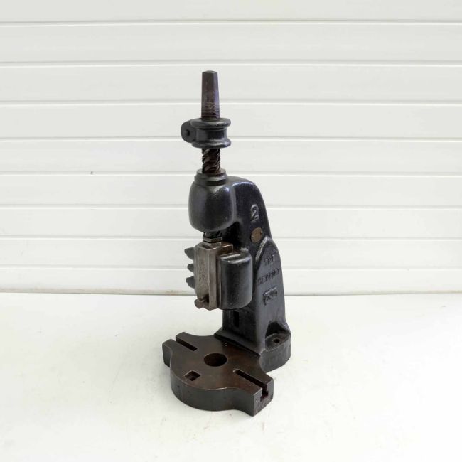 Denbigh No2 Fly Press. Throat 3". Daylight 5 1/2". Table Size 11" x 6 3/4". No Arm.
