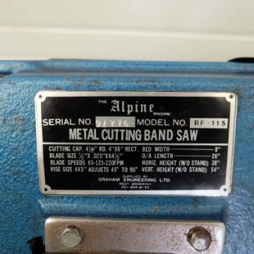 Alpine Model RF-115 Horizontal Bandsaw. With Blades. 240V.