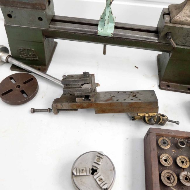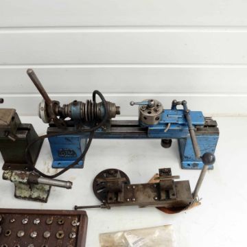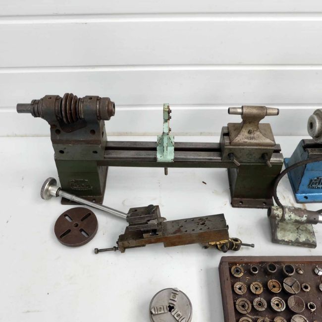 2 x Pultra Bench Top Watchmakers Lathes With Riser Blocks & Capstan Attachment. 3 Jaw Chuck & Various Collets. Faceplates. 3 Point Steady.
