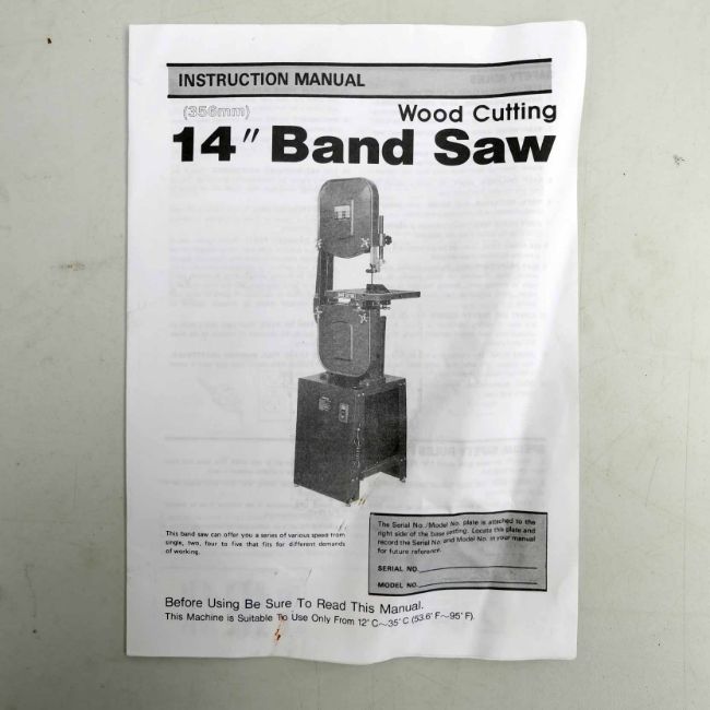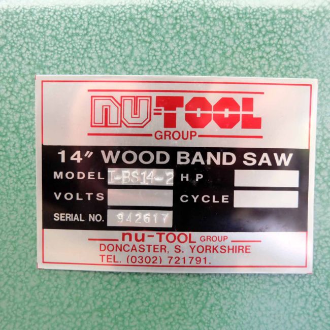 NU Tool Model T-BS14-2 14" Wood Bandsaw. Table Size 350mm x 350mm.