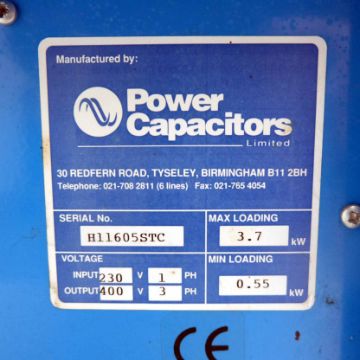 Transwave Convertors. Voltage Input 230V 1PH. Voltage Output 400V 3PH. Max Loading 3.7KW. Min Loading 0.55KW.