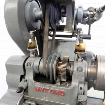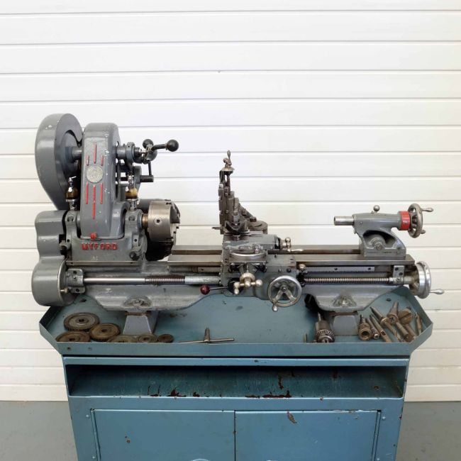 Myford ML7 Centre Lathe. 20" Between Centres. 7" Swing Over Bed. 10" Swing in Gap. 6 Spindle Speeds. Extra Feed Gears. 3 & 4 Jaw Chucks. Faceplates. Steady. Milling Attachment. Etc. Single Phase Motor 240V.